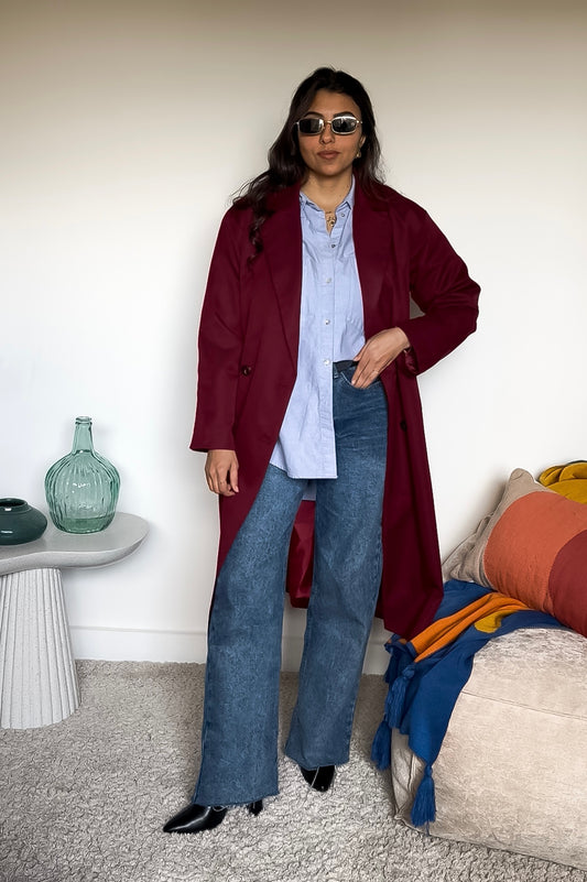 Long coat in burgundy